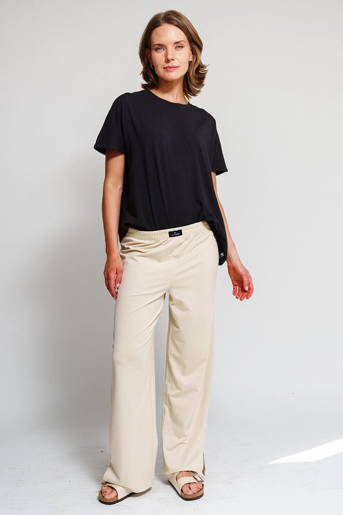 ¡Prepárate para el confort total con nuestros Pantalones de Descanso de Pierna Ancha y Cintura Doble! Extra suave y cómodos; ajuste relajado se complementa con aberturas laterales, añadiendo un toque contemporáneo a la clásica silueta de pierna ancha.