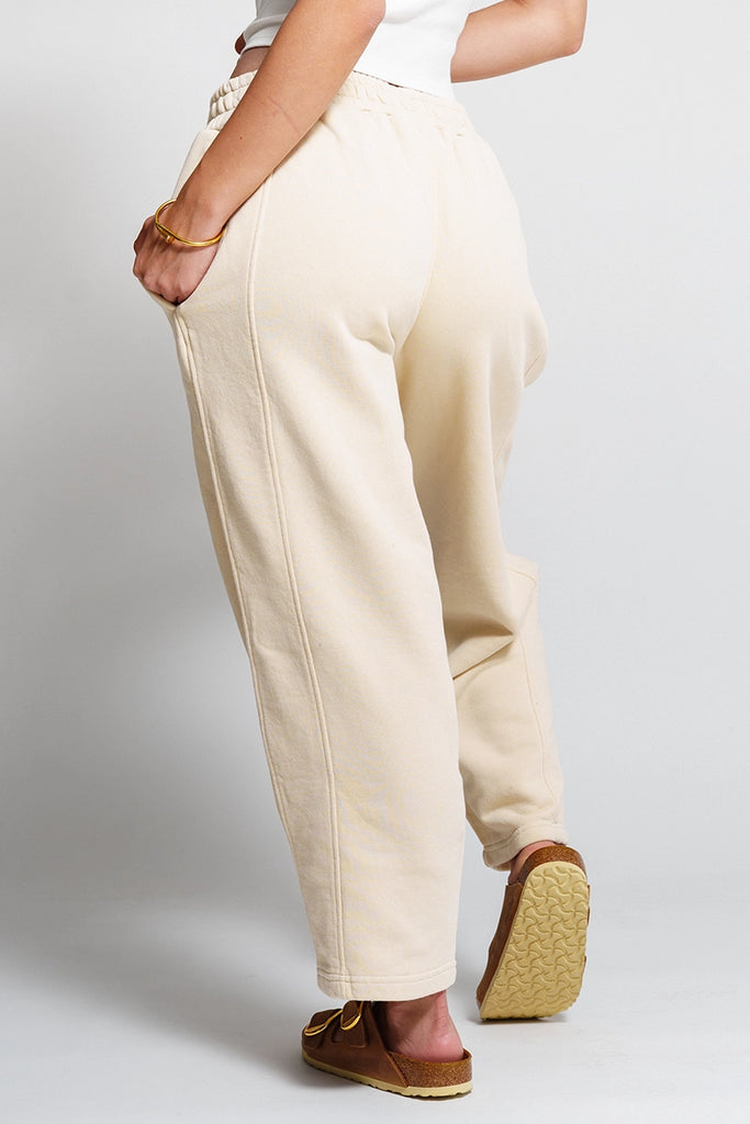 Diseñado para un estilo casual, este pantalón de lounge presenta una pierna de corte relajado (tipo barril) para forma y comodidad. Lavado especial para un tacto "vintage" Cuenta con una cintura elástica, los lo hacen fácil de llevar sin esfuerzo. Modelo lleva talla S