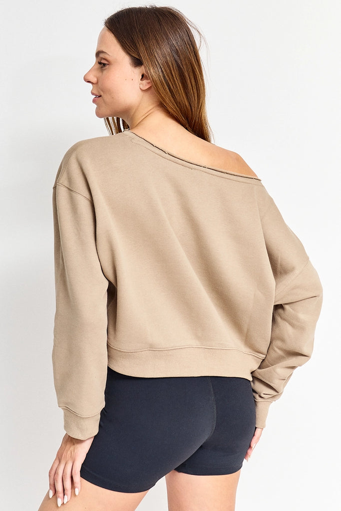 Off the Shoulder Sweatshirt-French Terry Taupe