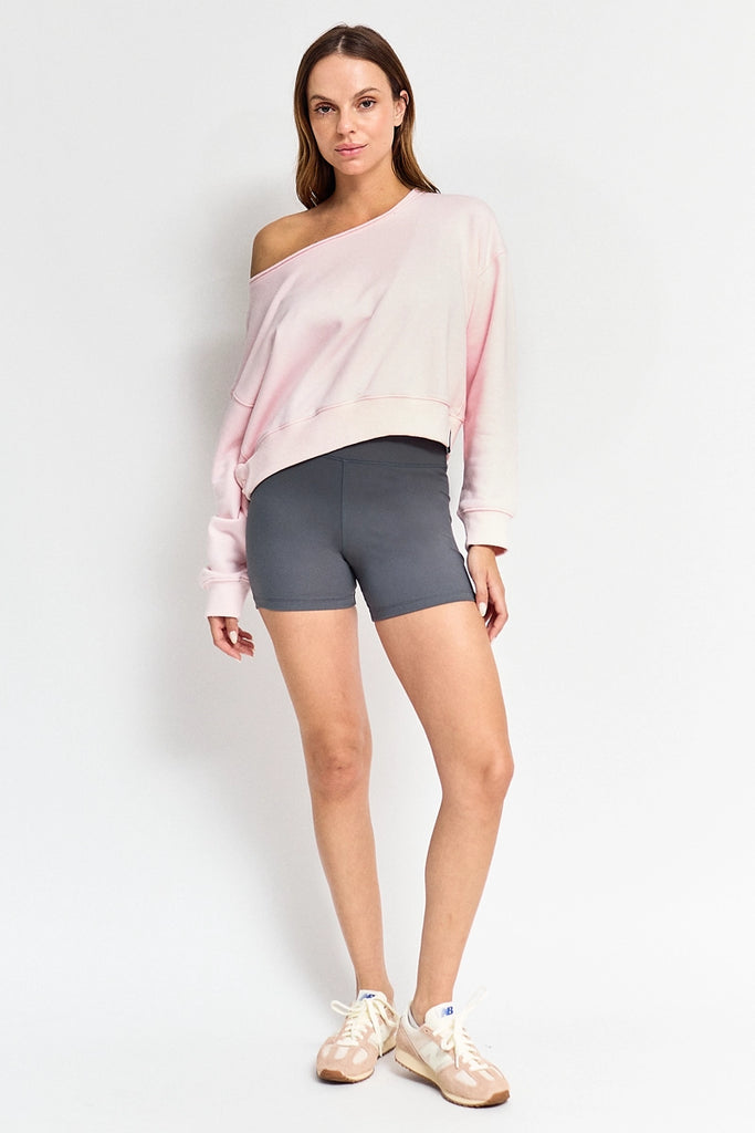 Diseñada con una silueta relajada y un sencillo escote off shoulder (hombros al descubierto) con acabado de borde sin rematar, esta prenda ofrece el equilibrio perfecto entre lo casual y lo chic. Combínala con leggings, joggers o jeans para un look que es a la vez relajado y refinado. Modelo usa talla S